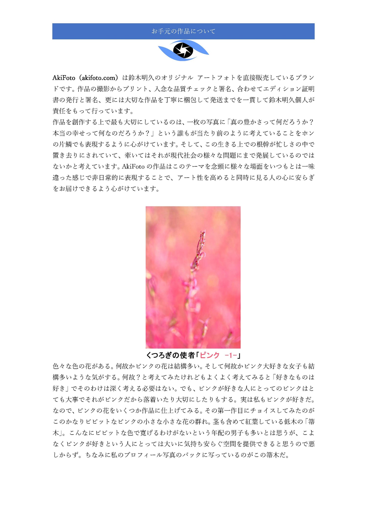 色々な色の花がある。何故かピンクの花は結構多い。そして何故かピンク大好きな女子も結構多いような気がする。何故?と考えてみたけれどもよくよく考えてみると「好きなものは好き」でそのわけは深く考える必要はない。でも、ピンクが好きな人にとってのピンクはとても大事でそれがピンクだから落着いたり大切にしたりもする。実は私もピンクが好きだ。なので、ピンクの花をいくつか作品に仕上げてみる。その第一作目にチョイスしてみたのがこのかなりビビットなピンクの小さな小さな花の群れ。茎も含めて紅葉している低木の「箒木」。こんなにビビットな色で寛げるわけがないという年配の男子も多いとは思うが、こよなくピンクが好きという人にとっては大いに気持ち安らぐ空間を提供できると思うので悪しからず。ちなみに私のプロフィール写真のバックに写っているのもこの箒木だ。